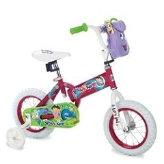 features Go exploring with dora the Explorer and this fun Huffy bicycle. This bike comes with a cool handlebar bag in the shape of Backpack, complete with a treasure map! The seat is padded and there are training wheels to help teach her how to ride a bike. Other features include: coaster brake for safe stopping, double chain guard for added protection, padded crossbar, front and rear reflectors. Wheel size is 12". Made of sturdy steel. Reminder, always wear a helmet for added safety. Dimensions: L: 35" x H: 25" It may take an additional 1-2 weeks for this item to arrive.This bike is perfect for little toddlers. Its well designed, sturdy and can be quickly assembled.