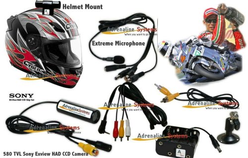 Buy 580 Sony ExView HAD CCD Helmet Camera + Stereo Sound - Helmet Mounted Action Cam for Extreme Sports and Racing Enviroments. Perfect for Motorcyle Racing, Car Competition, Downhill, Freeride, Sky Diving, Climbing and much more Now